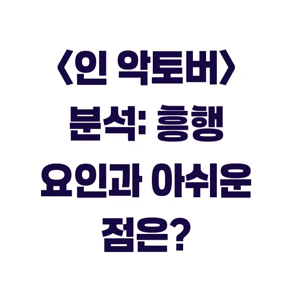 <인 악토버>는 공개 직후 엄청난 화제를 모았죠! 하지만 흥행 요인과 아쉬운 점이 공존하는 작품이기도 해요. 자, 그럼 지금부터 흥행 요인과 아쉬운 점을 객관적으로 분석해 볼까요?